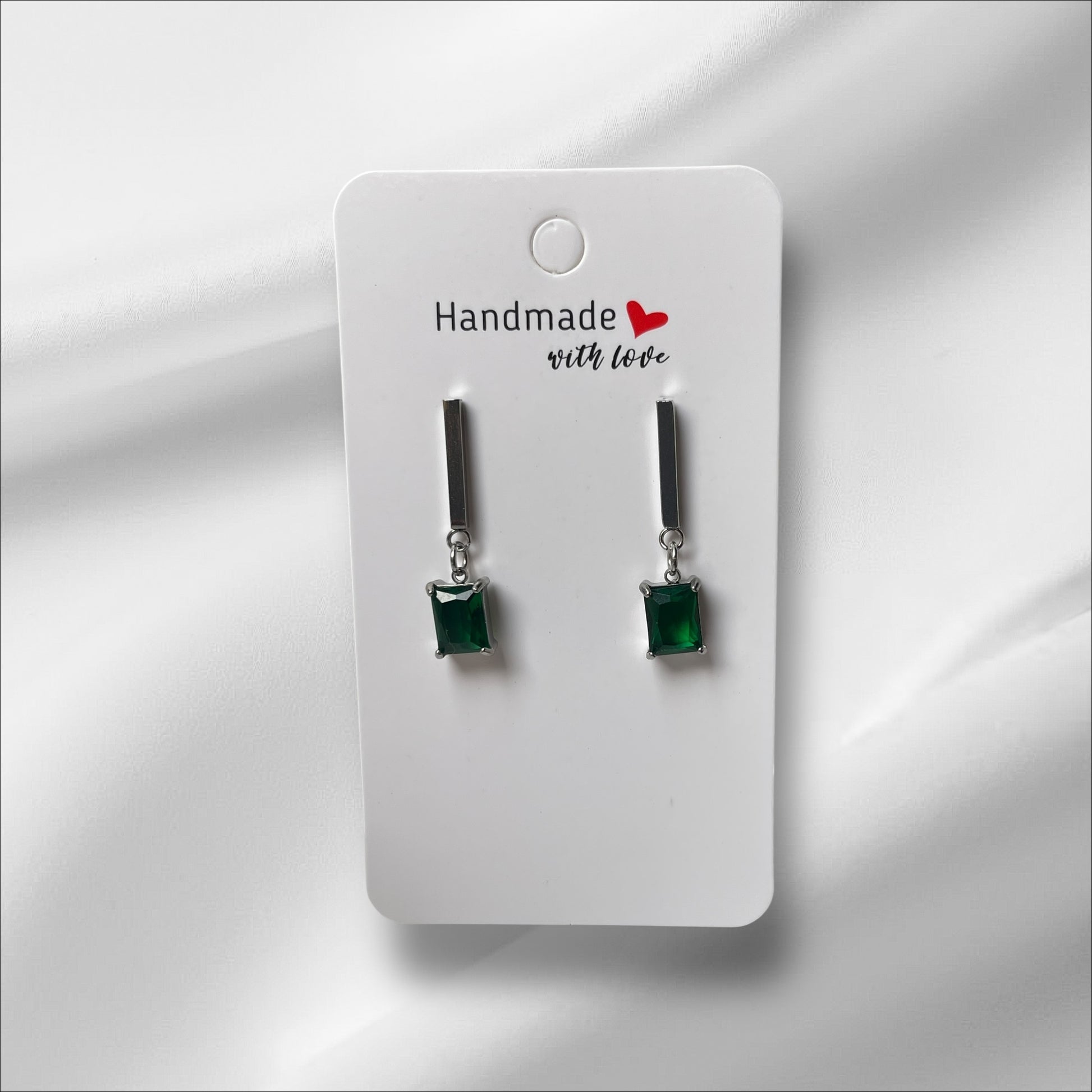 Add a touch of timeless elegance with our handmade zircon drop earrings, crafted with care from stainless steel for a durable, tarnish-free finish. Each piece features a sleek bar design with a sparkling zircon stone drop – available in emerald green or crystal clear, and in either square or teardrop cut.